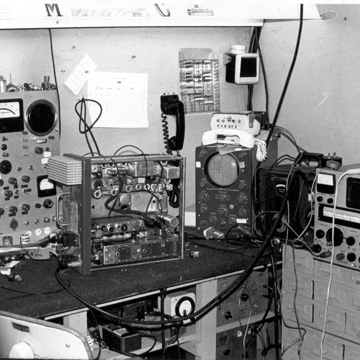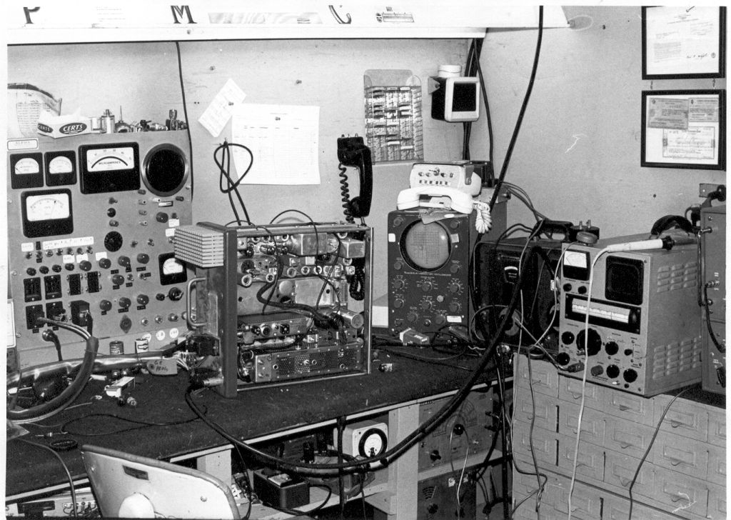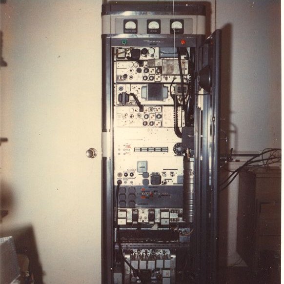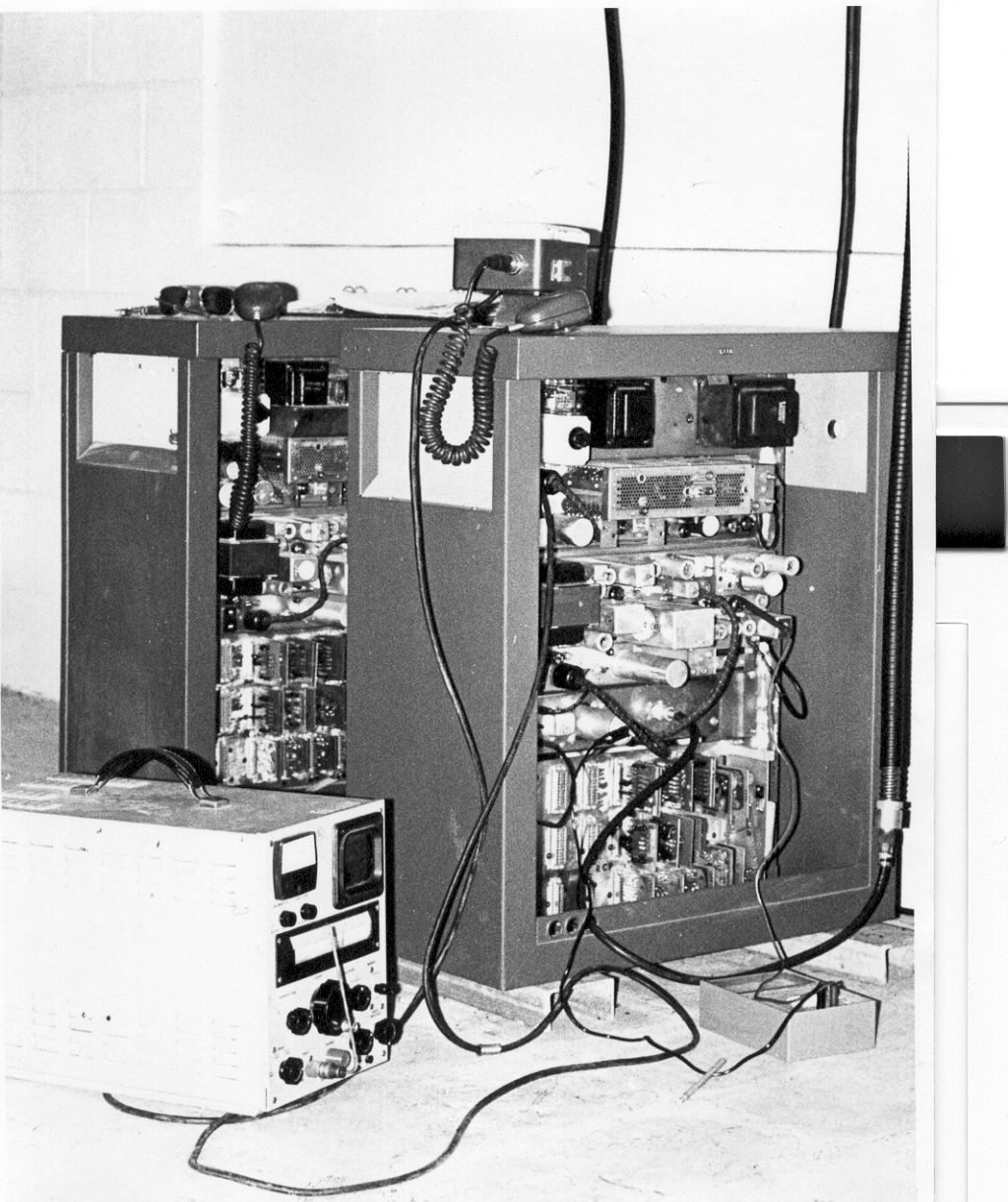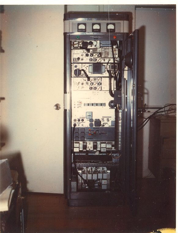 1971. Progress Line VHF commerical remote base stations on Loop Mountain above Chatsworth CA. Radio Specialties modulation scope.