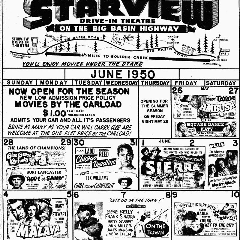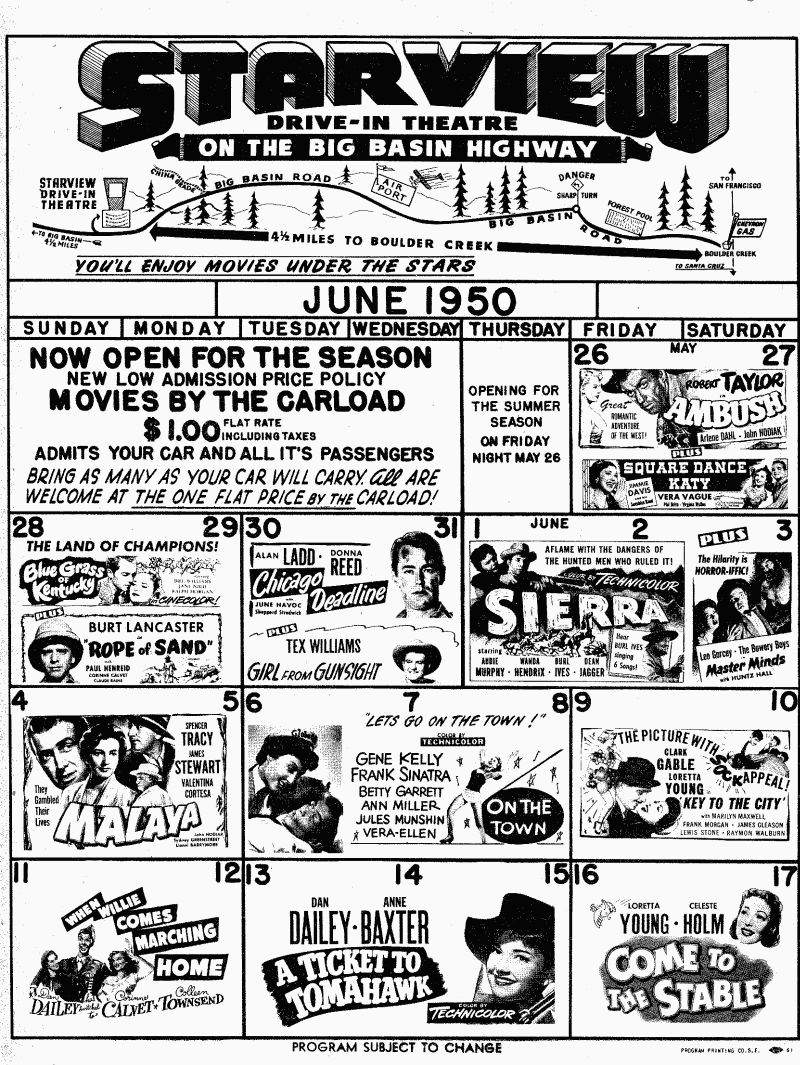 Starview DriveIn Theater in Boulder Creek. Located off Moon Drive today.